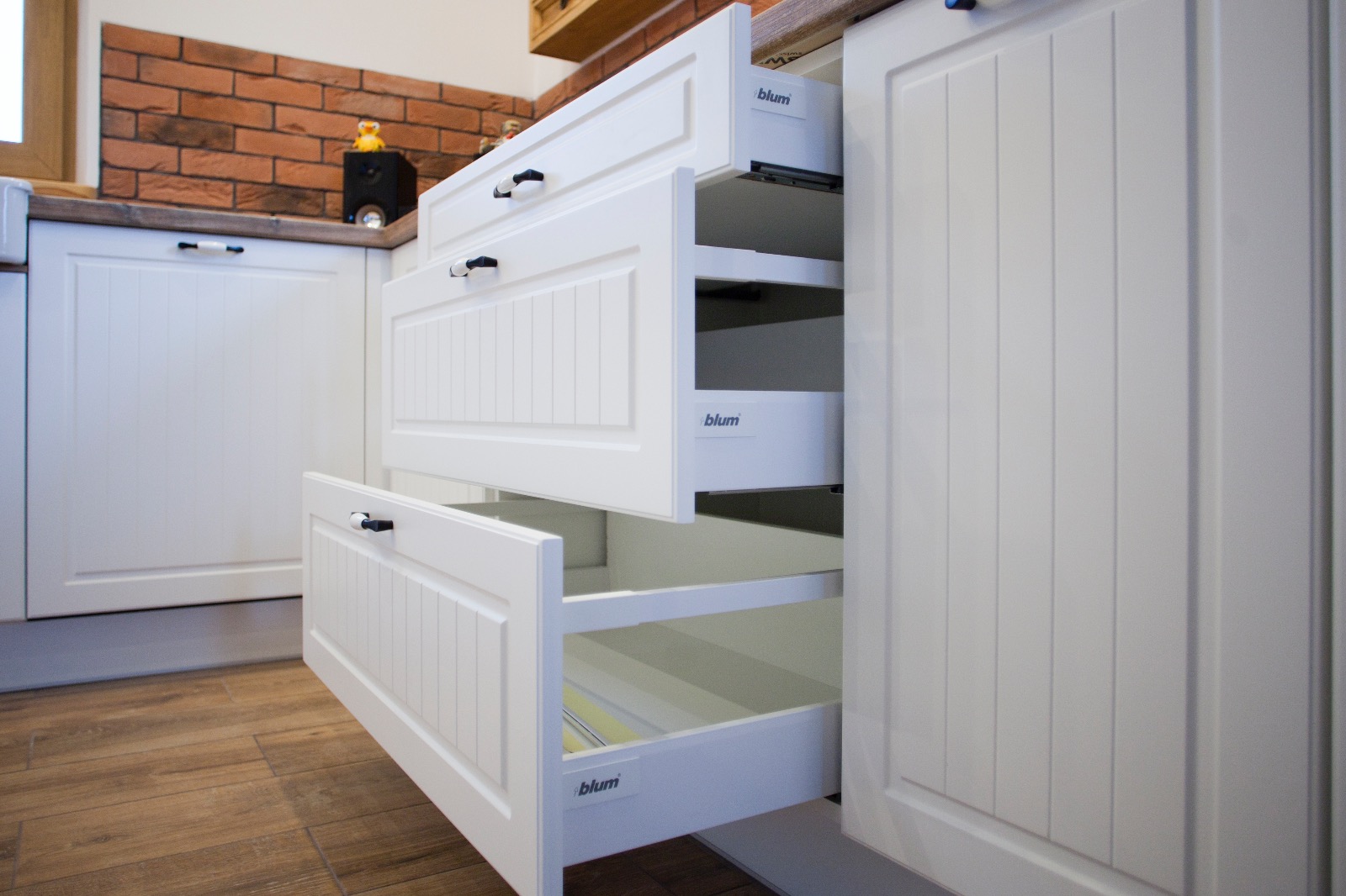 Staramy się dopasować materiały oraz użyte w meblach zawiasy, szuflady i inne elementy wyposażenia do budżetu klienta.